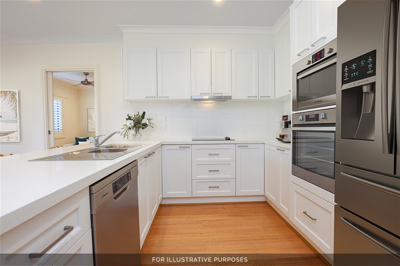 Thoughtfully designed for comfort and flexibility, the home features two generously sized bedrooms, each with its own private ensuite. The well-appointed kitchen boasts quality stainless steel appliances, modern stone benchtops, and ample storage, making it both stylish and functional.